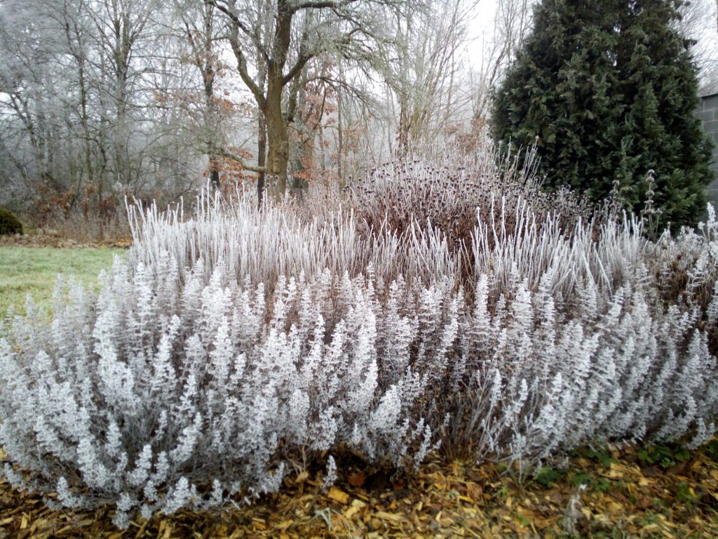 Zimní krása trvalkových záhonů dva roky po výsadbě