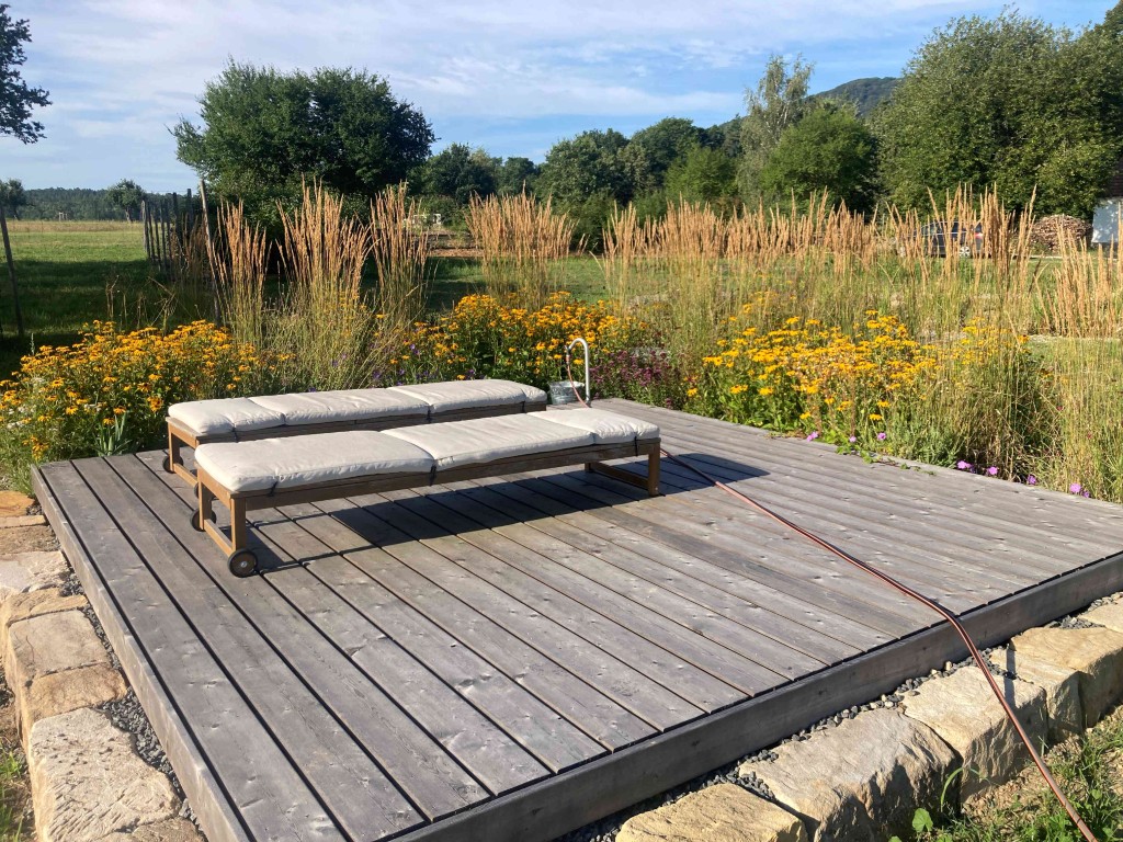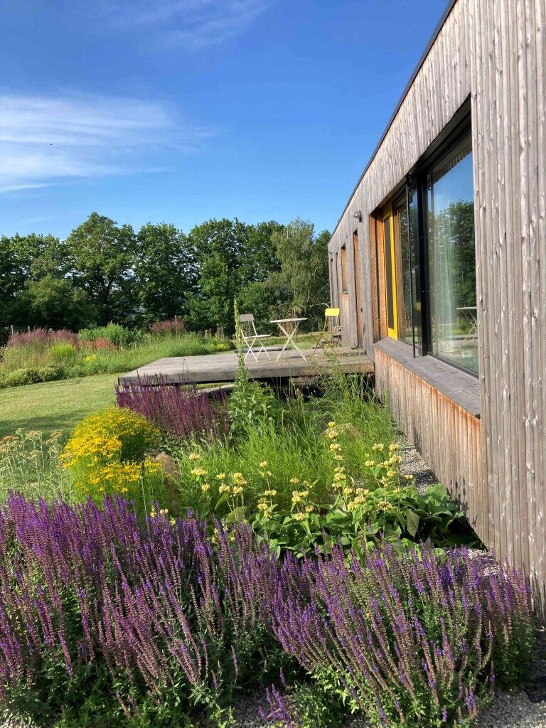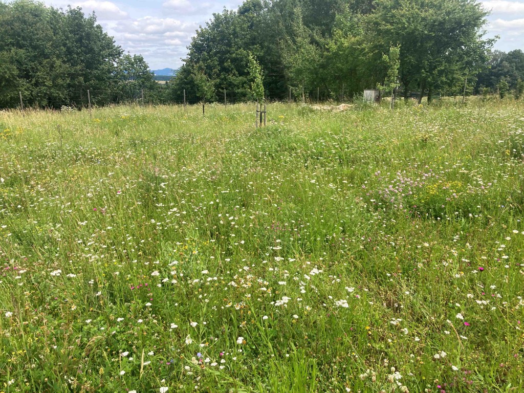 Velká část pozemku je určená pro kvetoucí zahradní louku kosenou 2x ročně.