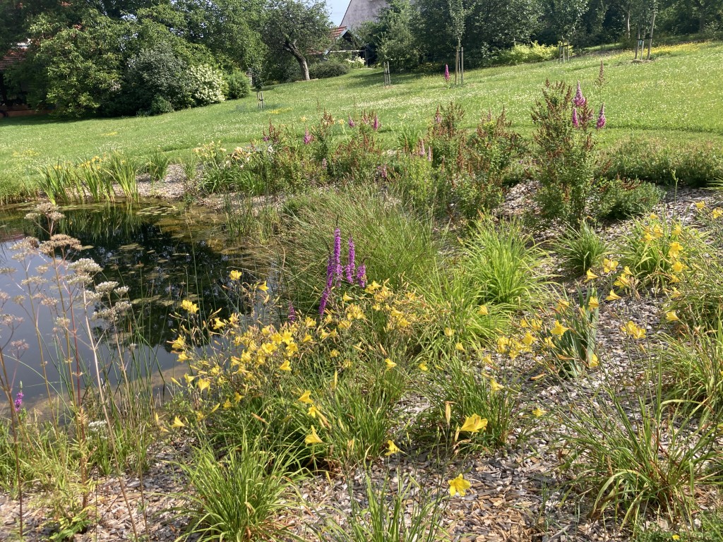 Záhon doplňující výsadby okolo jezírka.